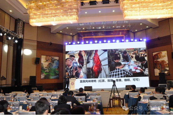 活动现场,中国注册烹饪大师、非物质文化遗产代表性项目昆明焖炉烤鸭制作技艺、市级代表性传承人、宜良山鸭科技小院负责人黎艳辉,一边展示鸭传统焖炉技艺,一边介绍黎老鸭4款烤鸭科技创新的亮点。据介绍,这4款产品是将宝洪茶、玫瑰花等云南特色食药同源资源与传统烤鸭工艺结合,既保留“皮脆肉嫩”的核心风味,又赋予健康营养新属性。酥脆鲜香的口感搭配独特的云南风味,让参会科学家、企业家赞不绝口。