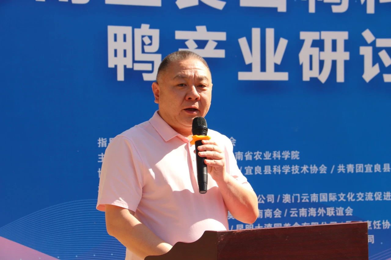 县委常委、县委统战部部长王雪梅表示,近年来,宜良依托独特的生态资源和传统养殖优势,成功创建为云南省麻鸭产业“一县一业”特色县。目前,全县年产白条鸭达1800万只,综合产业突破20亿元,宜良鸭产业成为了带动农民增收,促进乡村振兴的重要支柱产业。她希望以此次研讨会为新起点推动统战资源向产业发展聚焦、向基层一线下沉。以“智汇宜良”为引擎,充分发挥统战领域人才荟萃、智力密集、联系广泛的优势,加强与港澳等异地商会的合作交流。依托“山鸭科技小院”,推动传统养殖向绿色化、智能化、高效化转型升级。以“宜商好声音”为媒介,讲好“宜品良铺”故事,在“宜品良铺”成功打入北京、上海、香港等地的基础上,推动更多“宜品良铺”“花果茶鸭”系列产品出滇,走向更加广阔的舞台。以“铸牢中华民族共同体意识”为主线,相关部门协调联动,汇聚力量,主动靠前,做好企业服务工作,共同推动宜良产业发展。